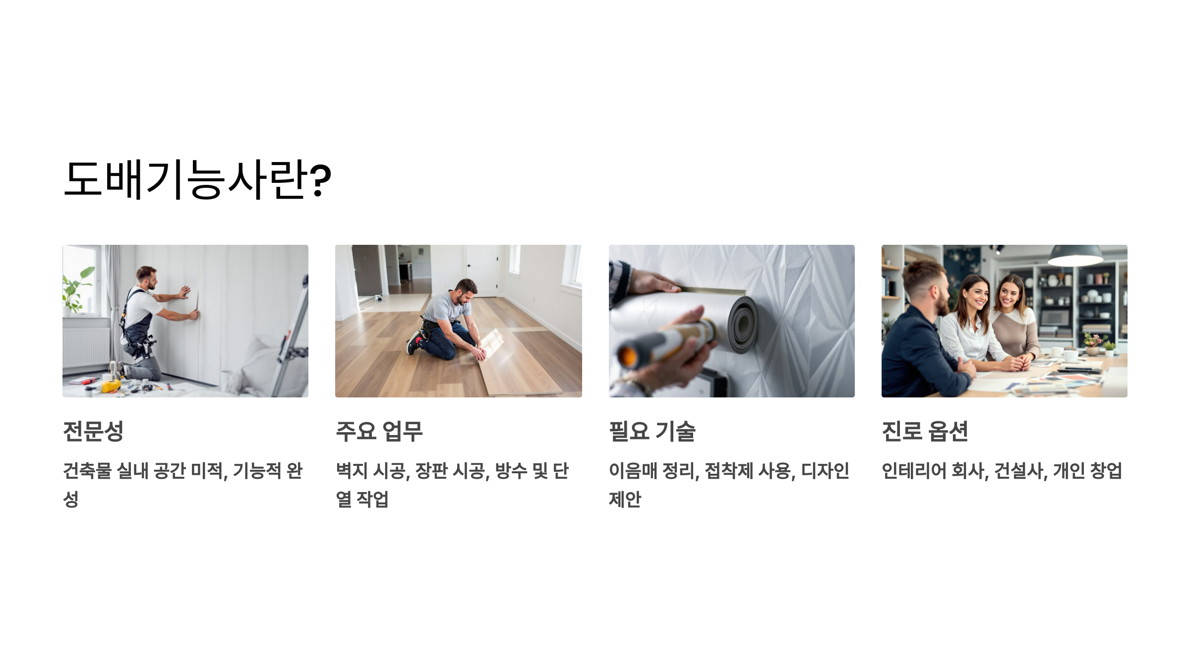 최근 리모델링 및 셀프 인테리어 시장 확대와 함께 도배기능사의 수요가 꾸준히 증가하고 있습니다.