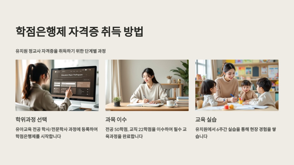 학점은행제는 고등교육법에 따라 정규 대학이 아닌 평생교육기관을 통해 학점을 인정받아 학위를 취득할 수 있는 제도입니다. 이 제도를 활용하면 시간과 비용을 절약하면서 유치원 정교사 자격증도 취득할 수 있습니다.