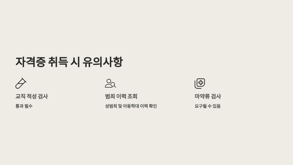 - 자격증 발급: 모든 요건 충족 시 교육부에서 자격증 발급
