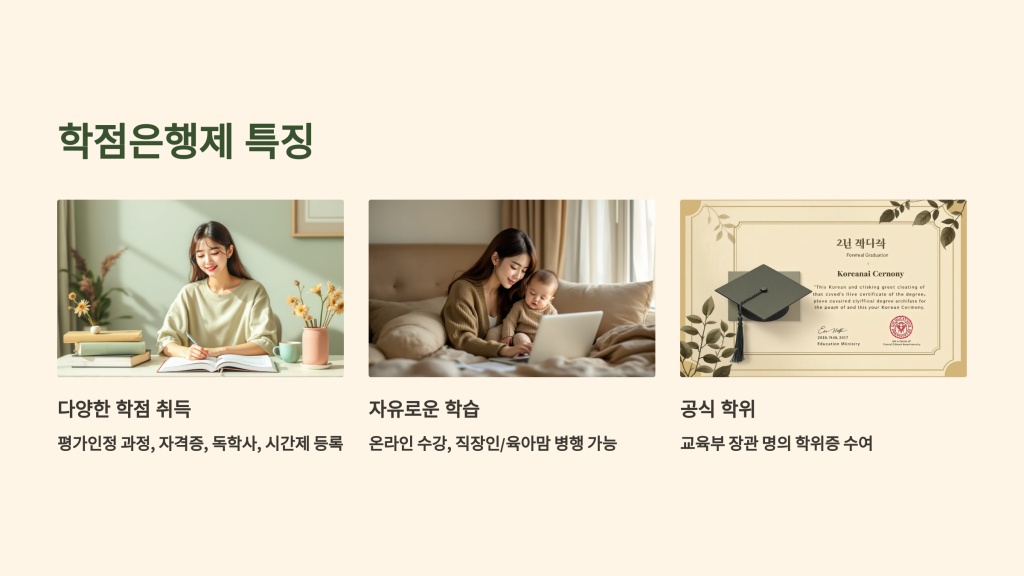 학위 취득을 원하지만 시간이나 비용 때문에 대학 진학을 망설이고 계신가요? 학점은행제는 이러한 분들을 위한 대안적 제도로, 다양한 방법으로 학점을 모아 정식 학위를 취득할 수 있는 제도입니다. 직장인, 전업주부, 대학 중퇴자 등 누구나 도전 가능한 이 제도에 대해 궁금하셨다면 지금부터 학점은행제의 모든 것에 대하여 알아보겠습니다.